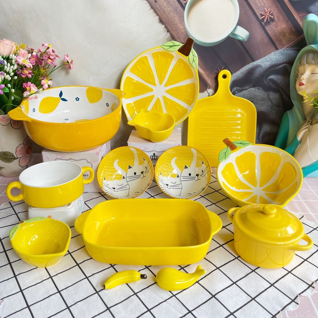 Nhà cửa & Đời sống > Bộ đồ bàn ăn > Tô || Set bát đĩa Màu Vàng Chanh Chén Đĩa sứ bát ăn cơm decor dễ thươngCòn hàng