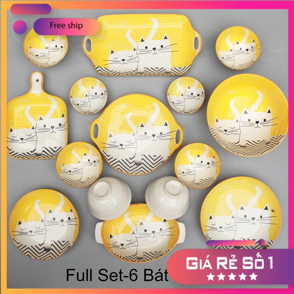 Set Bát Đĩa ⭐️MÈO VÀNG⭐️ Bát đĩa ăn cơm ăn mì, decor bàn ăn dễ thương
