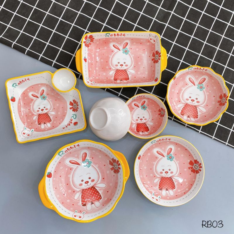 Nhà cửa & Đời sống > Bộ đồ bàn ăn > Tô || Set bát đĩa thỏ 7 mónCòn hàng