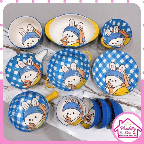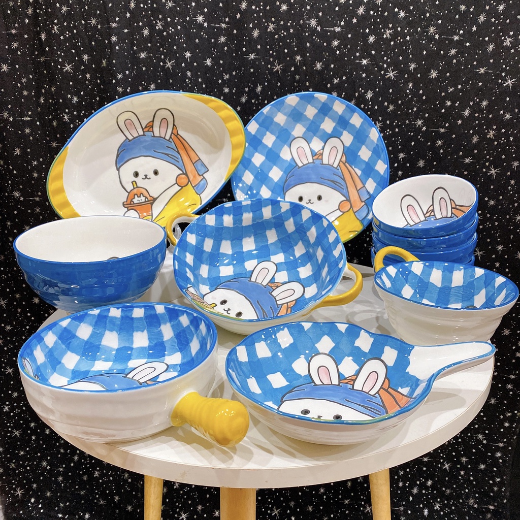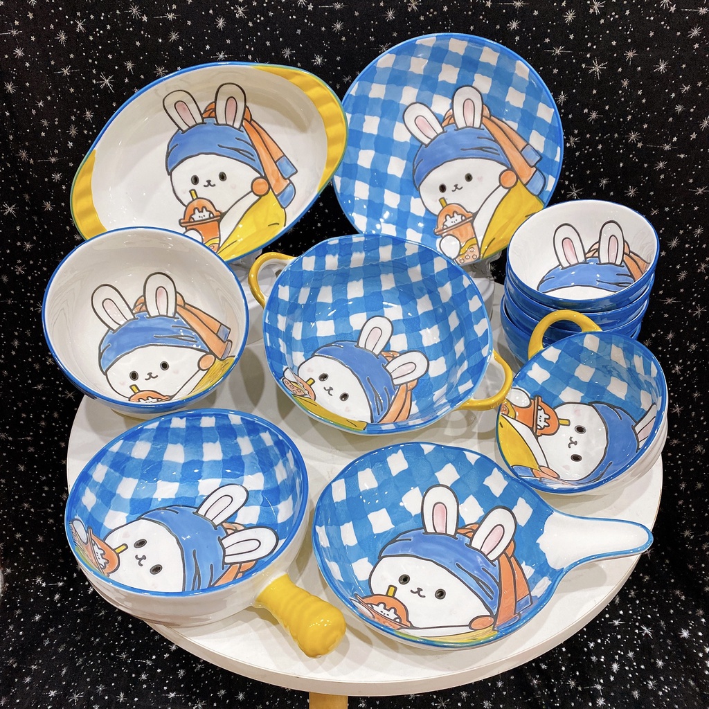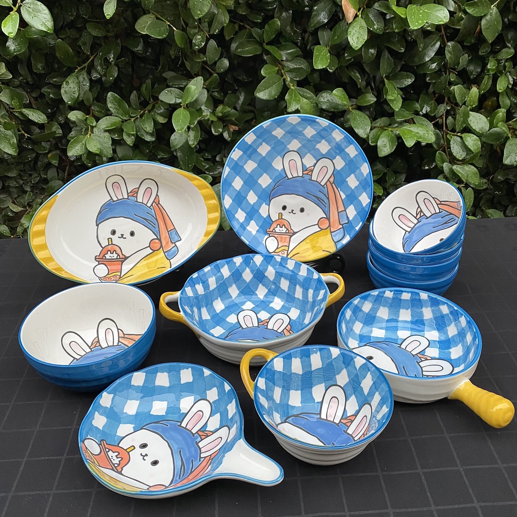 Bộ Bát Đĩa , Chén Dĩa Dễ Thương Decor Thỏ Trà Sữa Bát Sứ Ăn Cơm Thủ Công Vẽ Tay Đẹp Cute Cao Cấp