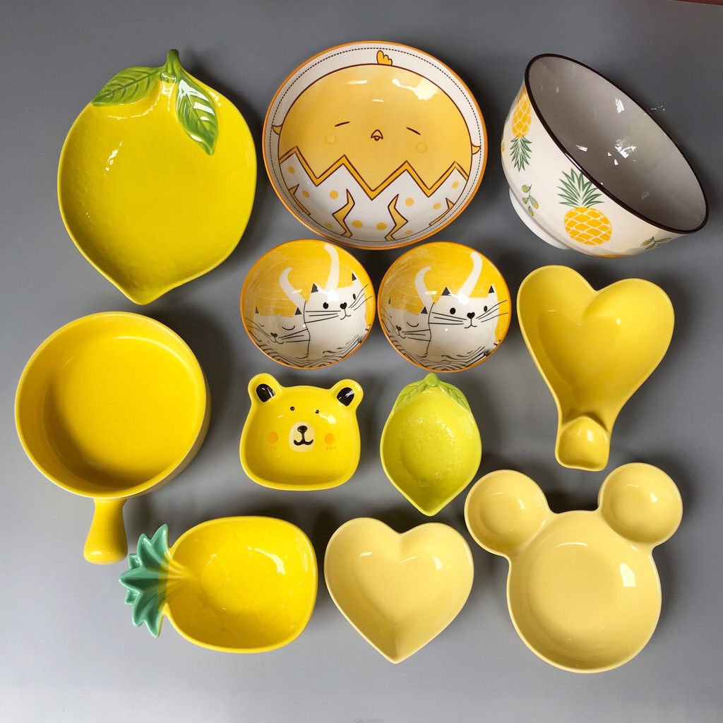 Set Bát Đĩa Vàng 12 món Bát Ăn Cơm Ăn Mì Decor Bàn Ăn Dễ Thương