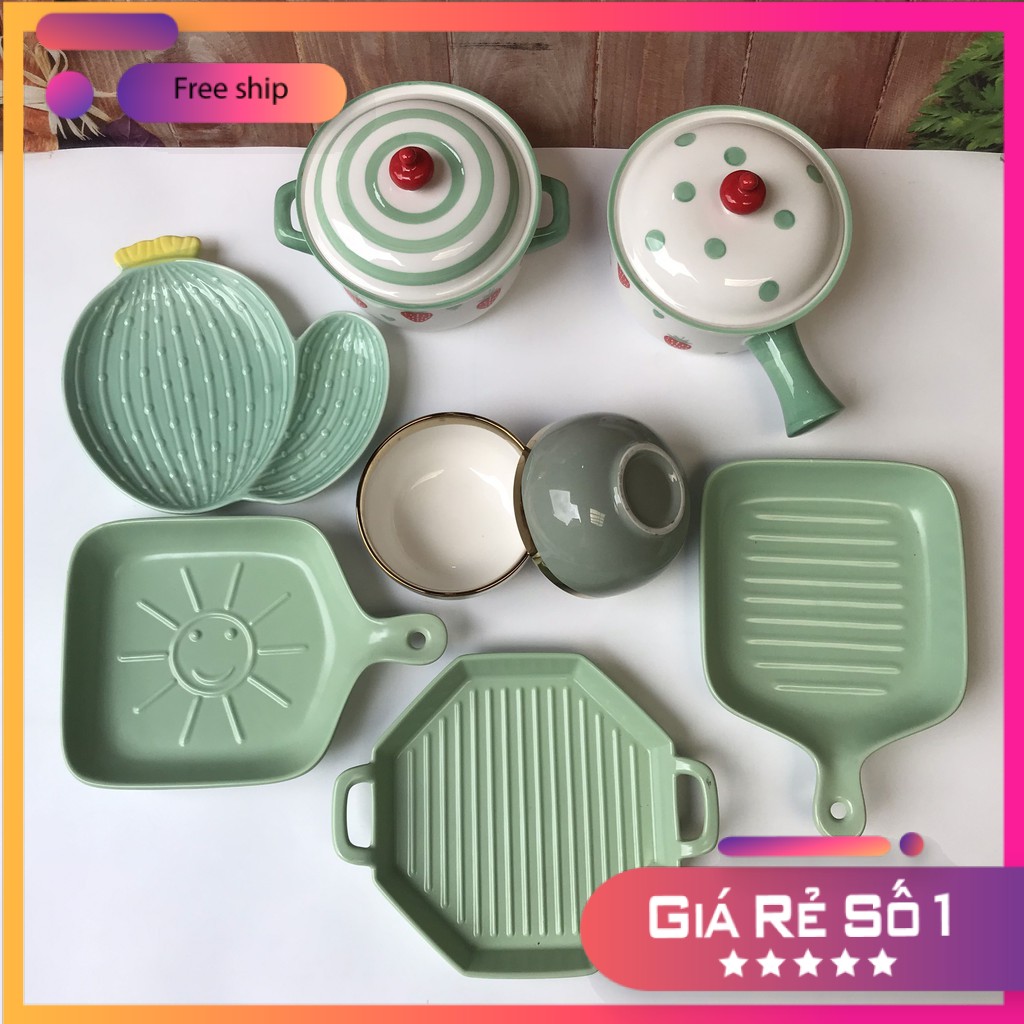 Tên Sp: Set Set Bát Đĩa 💚XANH RÊU💚 Bát đĩa ăn cơm ăn mì, decor bàn ăn dễ thương⭐️Cam Kết đổi trả 1 1 với sản phẩm bị vỡ trong quá trình vận chuyển . Khách hàng nhắn tin và gửi ảnh cho shop để shop gửi trả hàng mới.