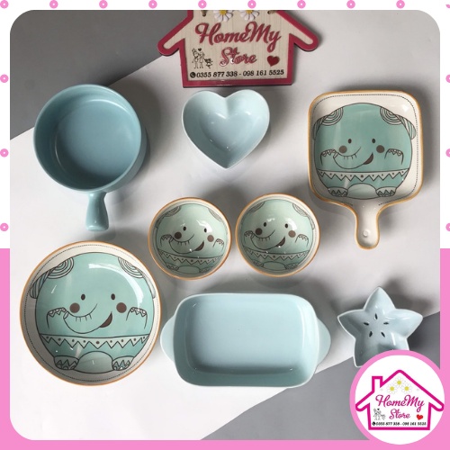 Set Bát Đĩa Xanh Dương 8 món, Bát Đĩa Decor Dễ Thương (HomeMyStore)