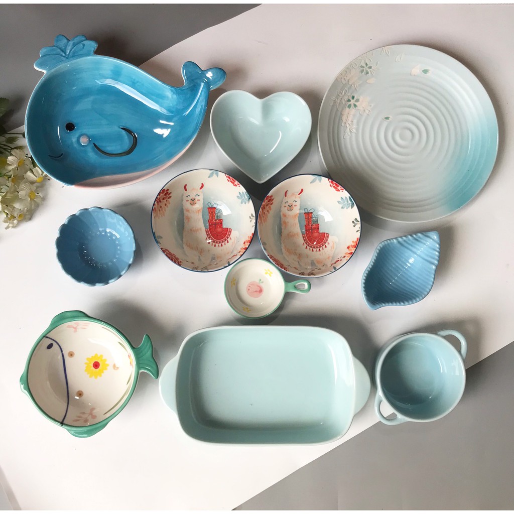 Nhà cửa & Đời sống > Bộ đồ bàn ăn > Dĩa || Set Bát ĐĩaXANH BIỂN Bát đĩa ăn cơm ăn mì, decor bàn ăn dễ thươngCòn hàng