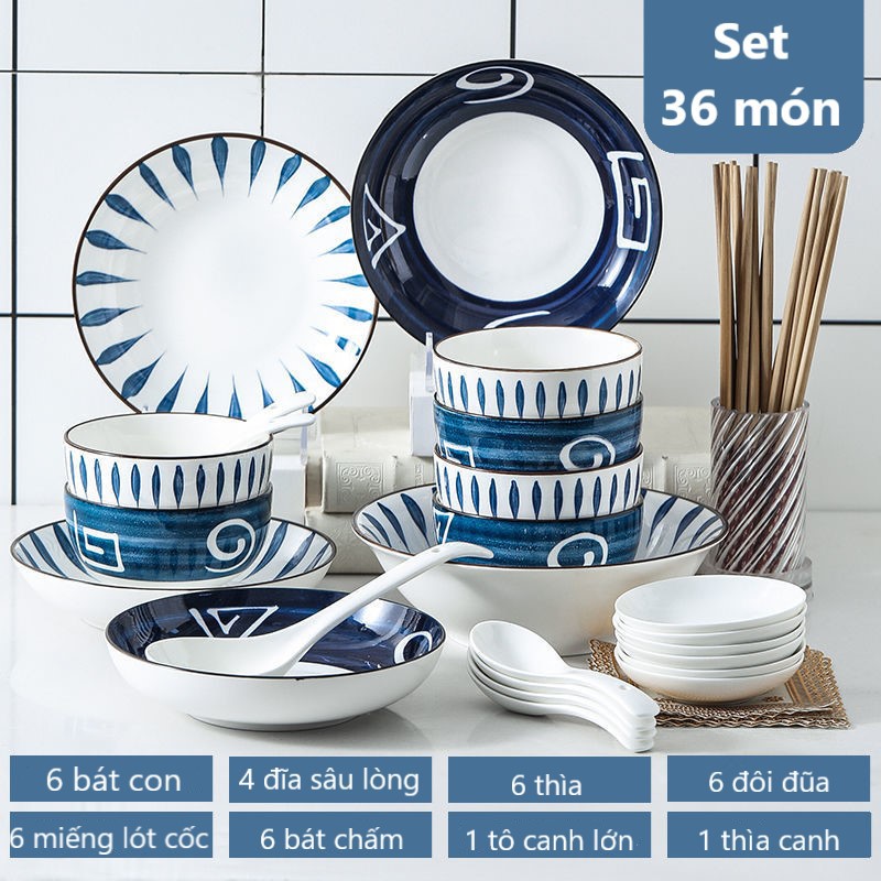 - Tên: Set bát đĩa gốm phong cách Nhật Bản