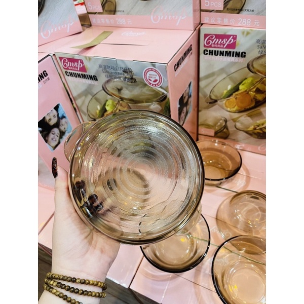 Set bát thuỷ tình gồm 1 bát to có nắp + 4 bát thuỷ tinh nhỏ