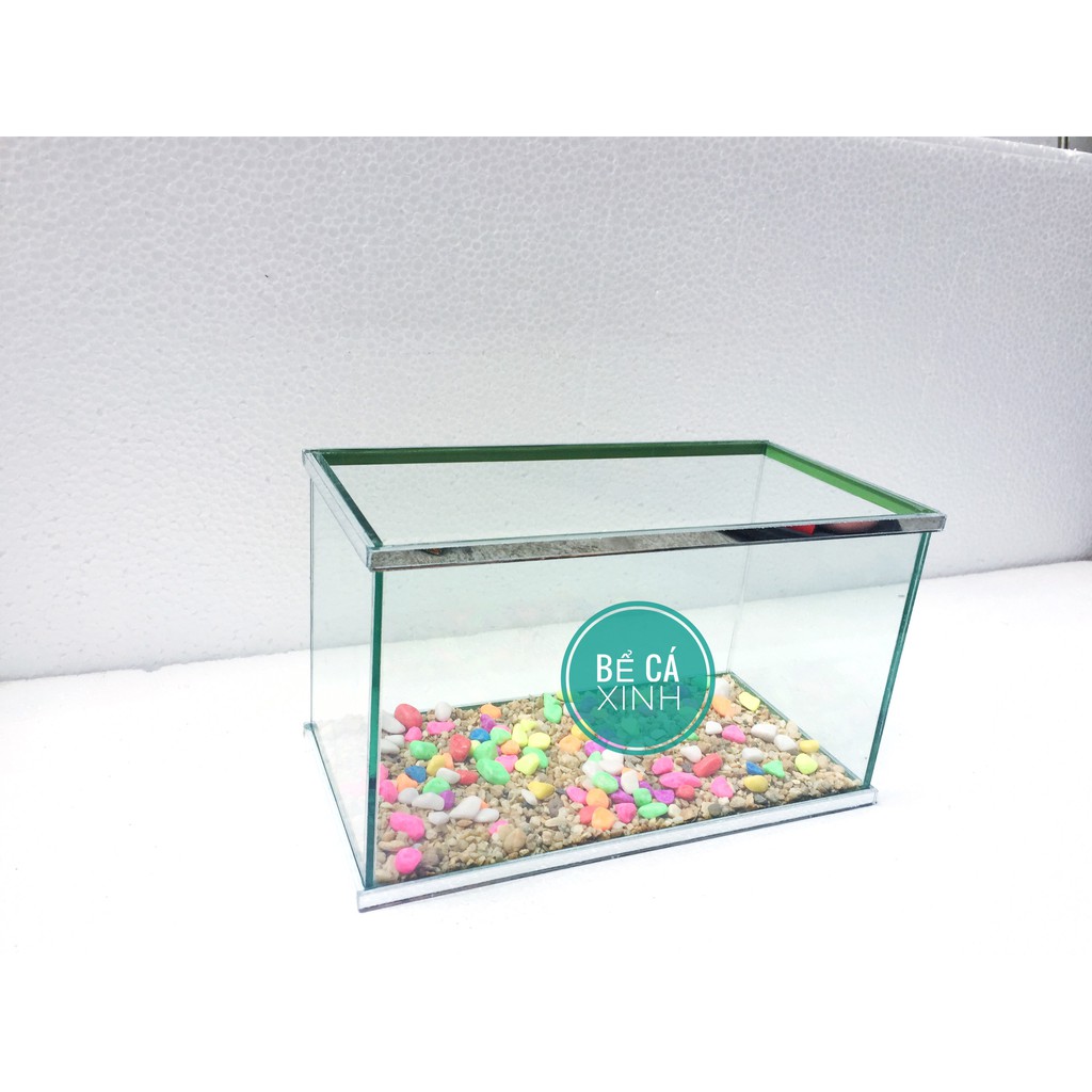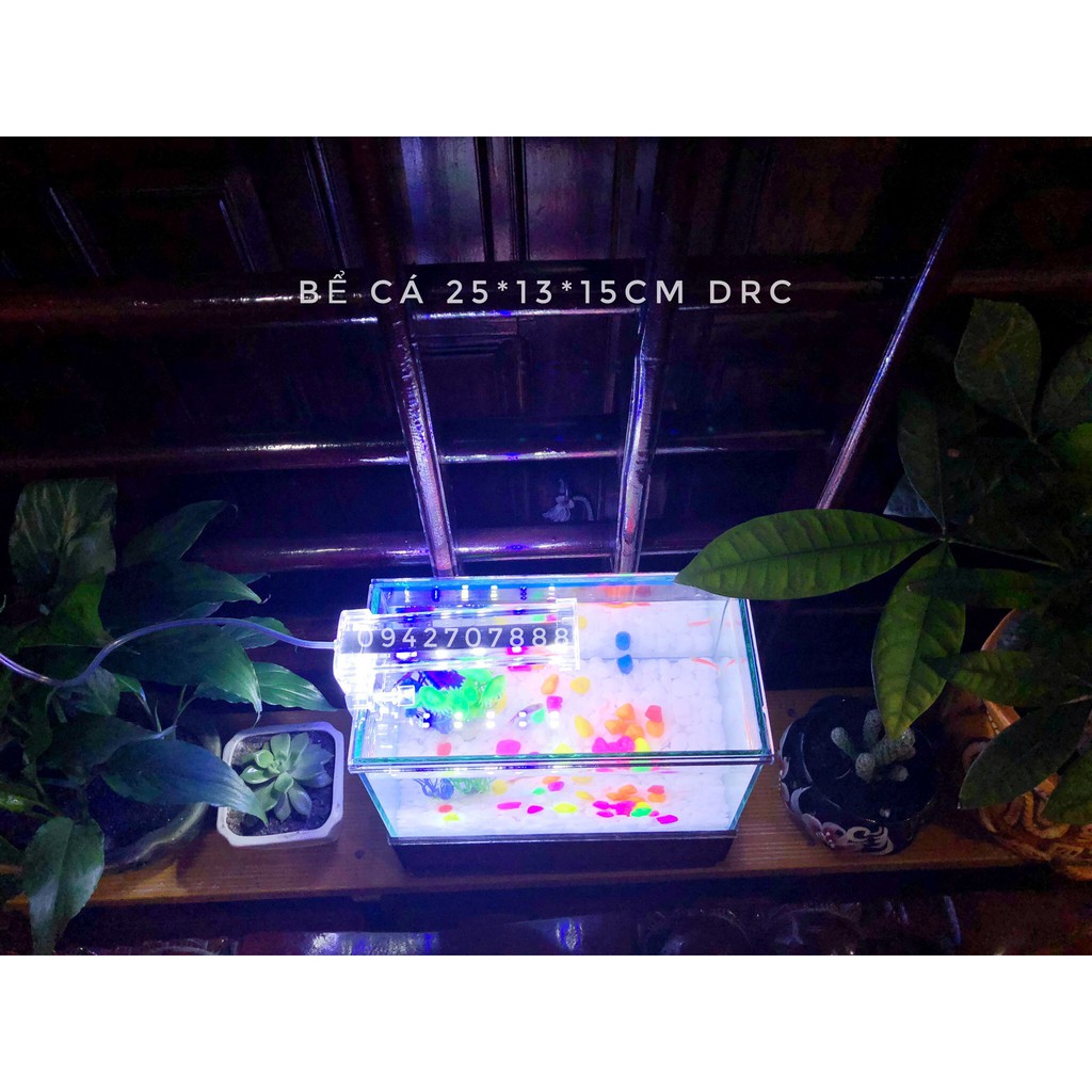 Bể cá : kính dày 4ly cực chắc chắn, trong suốt. Kích thước 25x13x15cm DRC