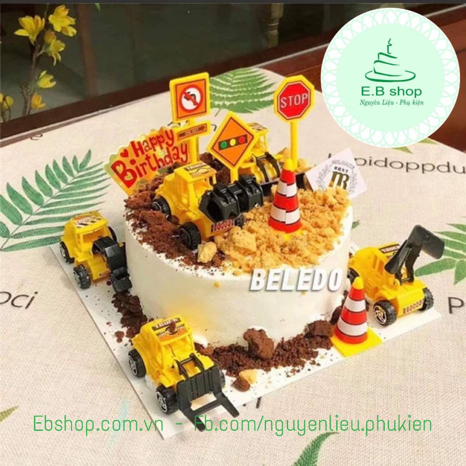 Giới thiệu SET BIỂN BÁO VÀ XE CÔNG TRƯỜNG TRANG TRÍ BÁNH