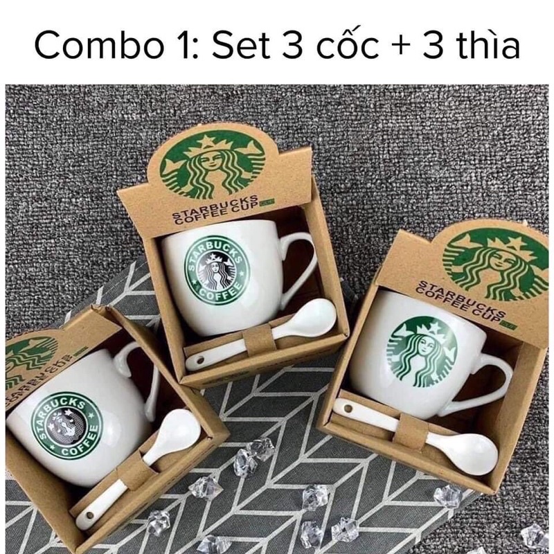 ✅ Combo 1: 3 cốc sứ + 3 thìa full box (dung tích ~200ml/cốc)