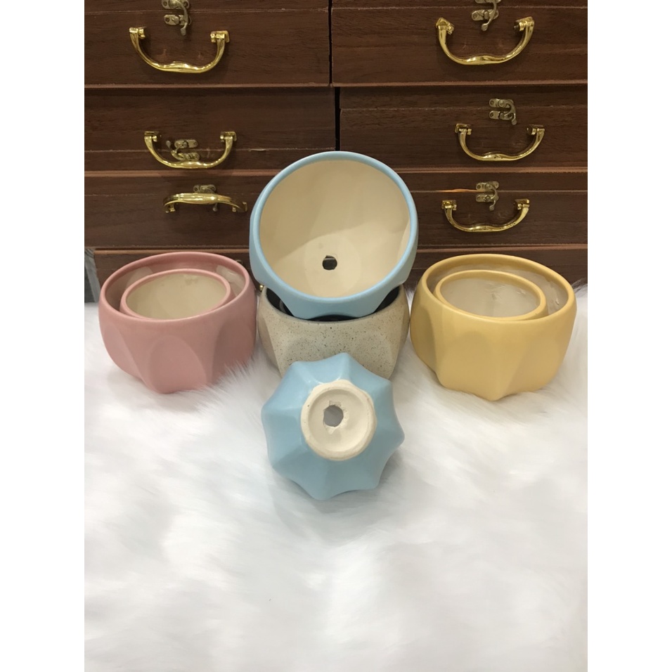 [SET, BỘ 2 CHẬU KIỂU BÁT CÁNH SEN] Chậu trồng cây cảnh mini - Sen Đá - Xương Rồng - Hoa nhỏ - gốm Sứ Bát Tràng.