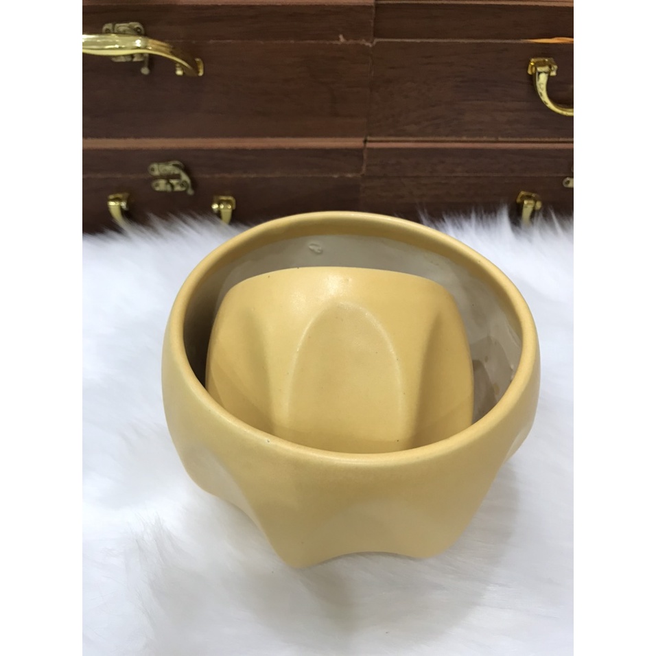 - Chậu men, in hình xinh xắn. Mang lại cảm giác sinh động và sang trọng.