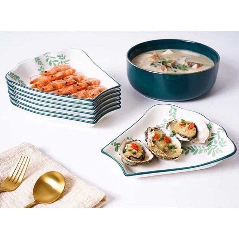 Nhà cửa & Đời sống > Bộ đồ bàn ăn > Dĩa || Set bộ đồ ăn hoa Mặt trời hoạ tiết xanh trắng - bộ đồ ăn gốm cao cấpCòn hàng