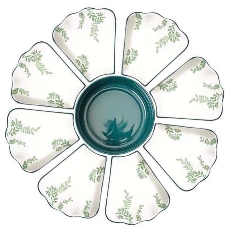- Set 1 bao gồm: 01 bát tô, 08 đĩa cánh hoa, 01 đĩa muối, 01 bát mắm, 8 bát con