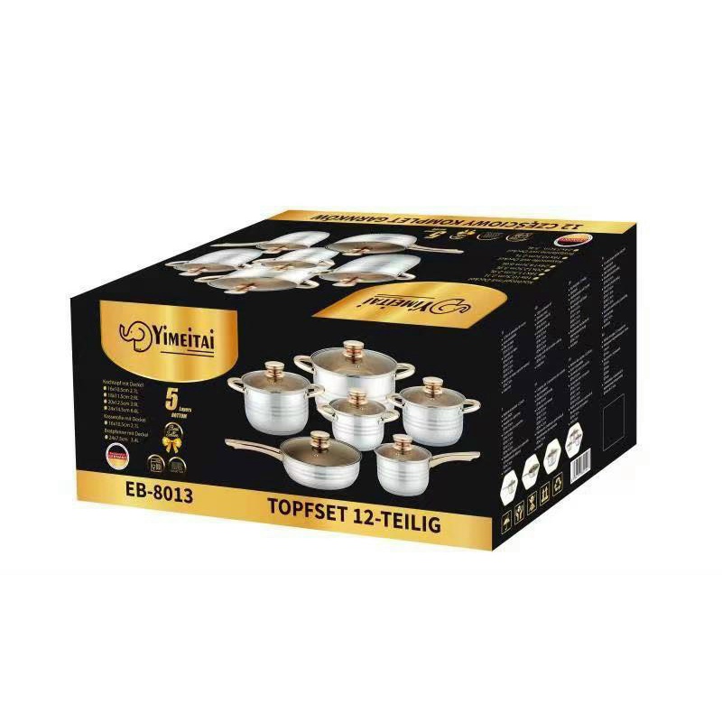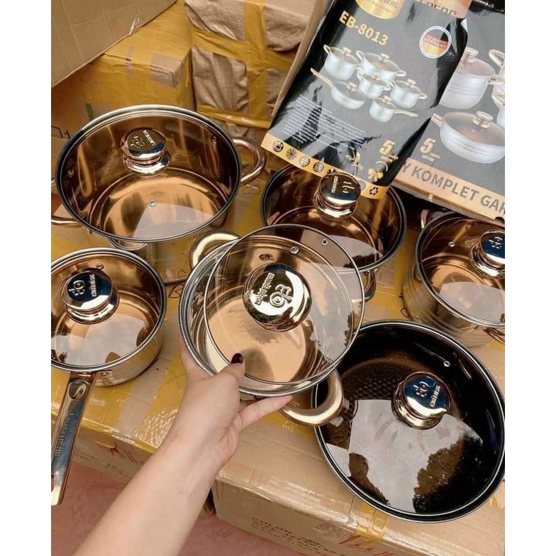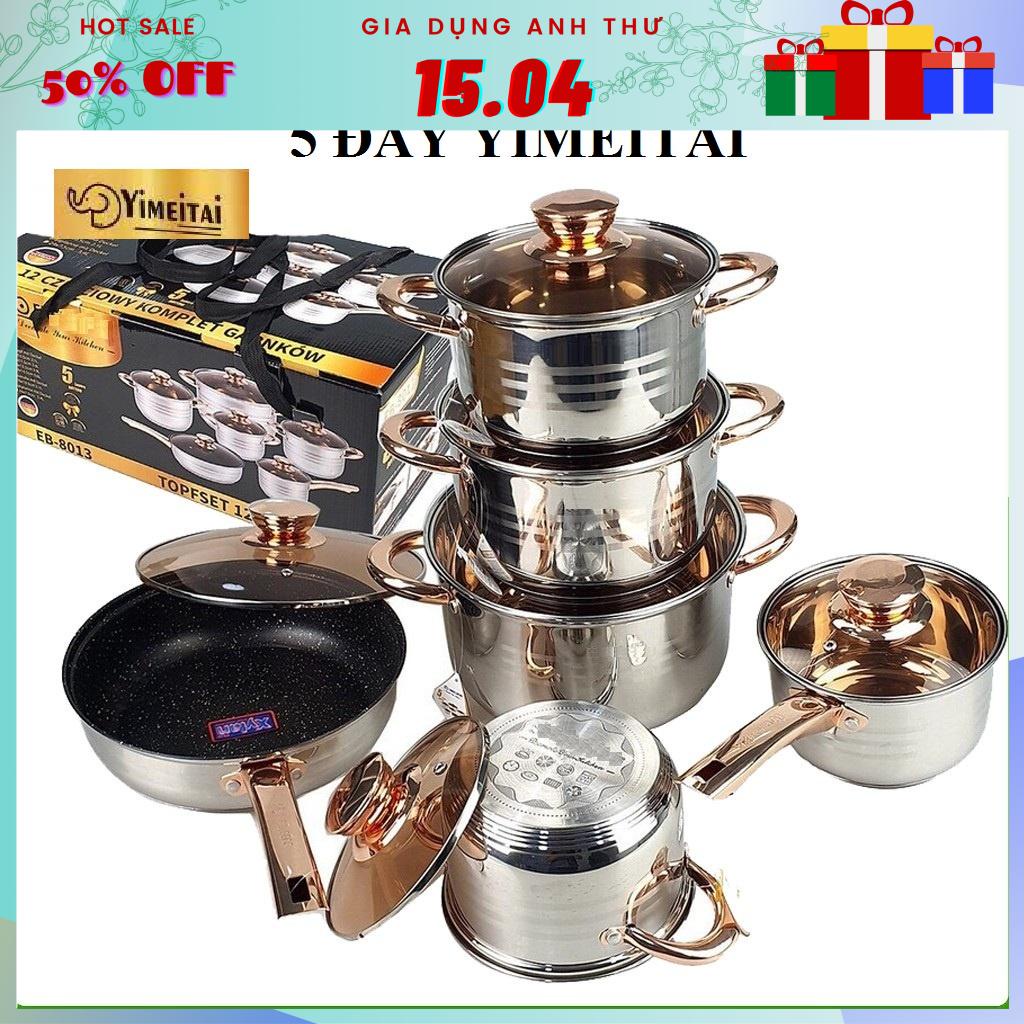 Set Bộ nồi Đức 5 đáy Yimeitai gồm 6 món lắp hợp kim vàng dùng cho mọi loại bếp điện, bếp từ, bếp ga