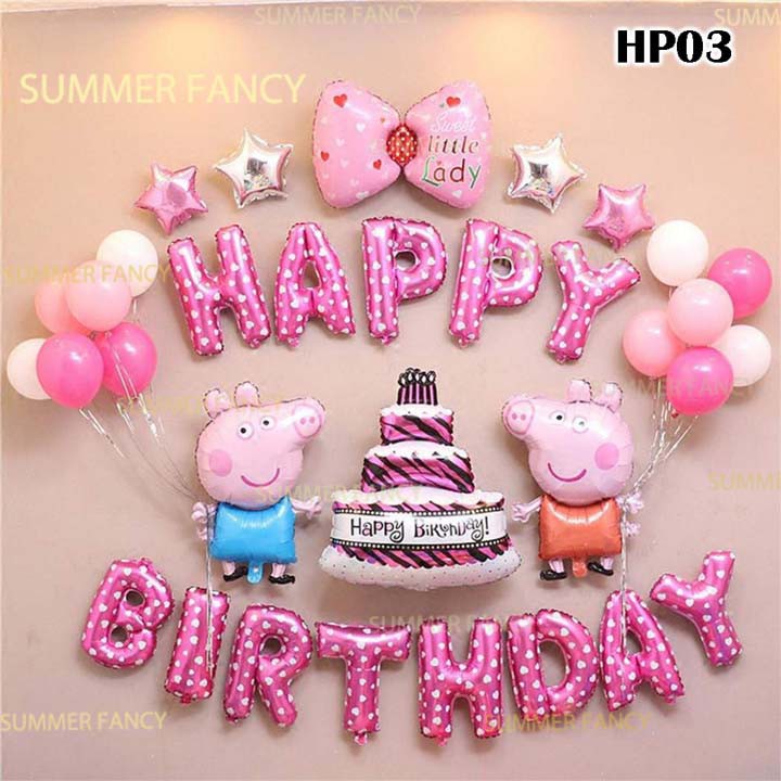 Set bong bóng heo Peppa pig hồng bé gái - Happy Birthday Peppa pig pink girl