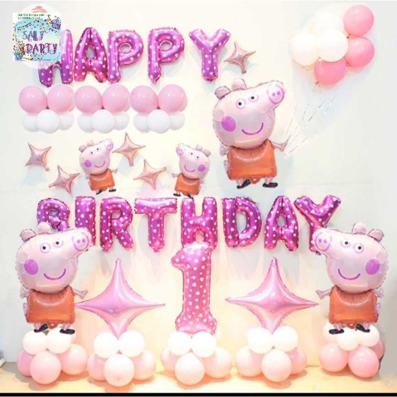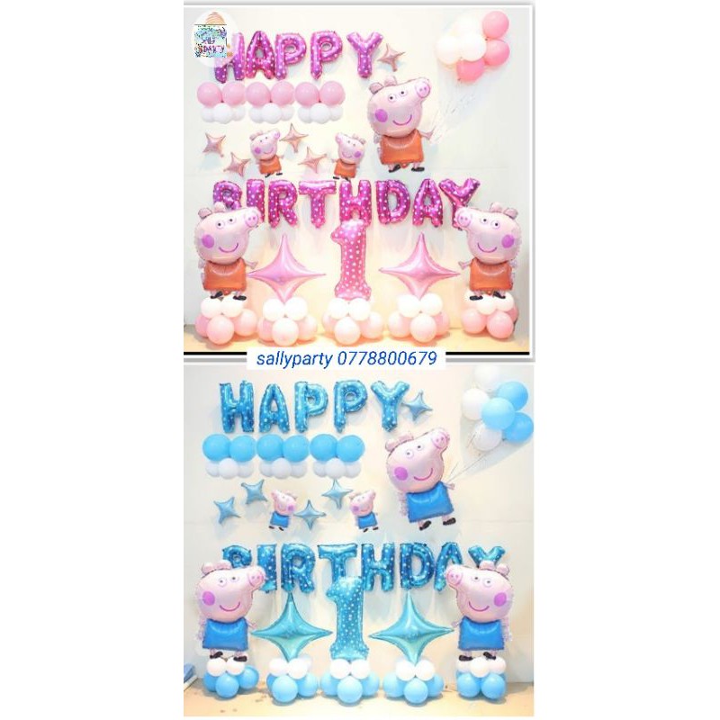 Giới thiệu Set bóng sinh nhật con heo bé 1 tuổi.