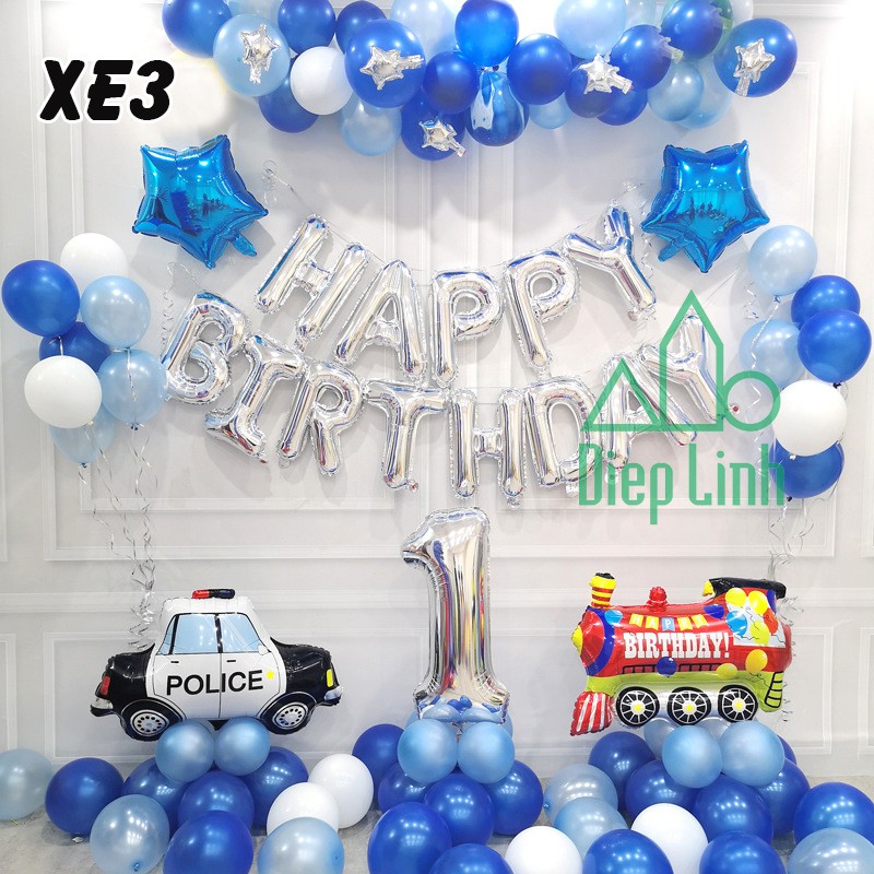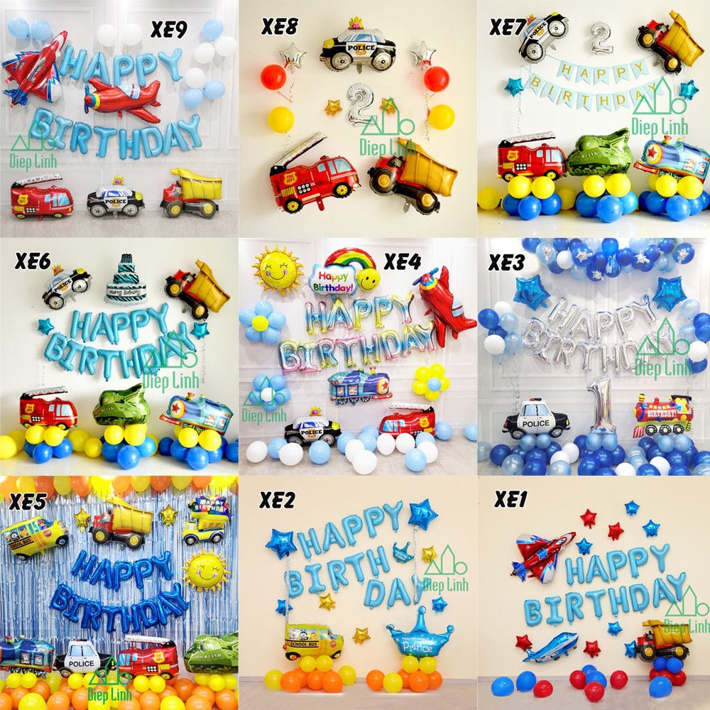 Sét Bóng Trang Trí Hình Xe Ô Tô Giao Thông Máy Bay Cho Bé Trai - Diệp Linh