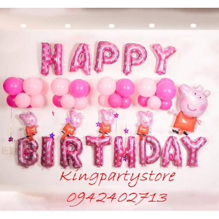 Set bóng trang trí sinh nhật cho bé tuổi Heo ( tuổi Hợi) peppa pig dễ thương