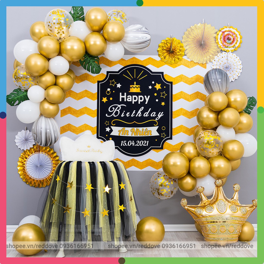 Link này shop tuyển chọn ra những mẫu tông vàng + trắng với màu chủ đạo là vàng gold cực kì bắt mắt của bóng siêu nhũ vàng gold thích hợp để trang trí sinh nhật cho cả bé gái, bé trai, với những mẫu từ đơn giản đến full set đầy đủ cả backdrop➥ Link gồm nhiều mẫu cho khách hàng lựa chọn, bạn lướt sang phải để xem hết hình ảnh và mô tả cụ thể của từng set nhé