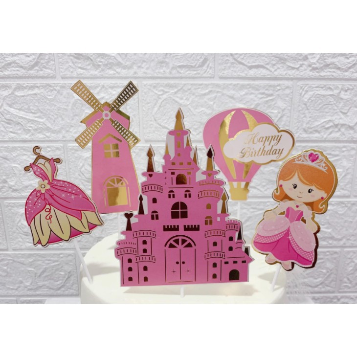 Set cắm công chúa lâu đài siêu đẹp - Phụ kiện trang trí bánh