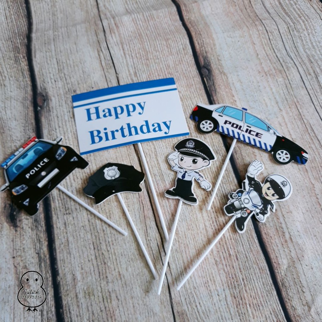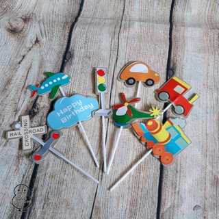 Set topper cắm giấy trang trí bánh kem, bánh sinh nhật, bánh gato- Bộ sản phẩm gồm: 4 mẫu (máy bay, bóng đá, cảnh sát, giao thông)