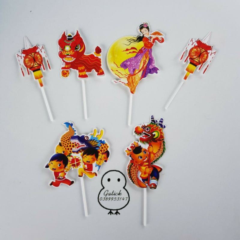 Nhà cửa & Đời sống > Dụng cụ nhà bếp > Dụng cụ nướng & trang trí bánh || Set cắm giấy trang trí bánh kem trung thu, Tết trung thu Topper cakeCòn hàng