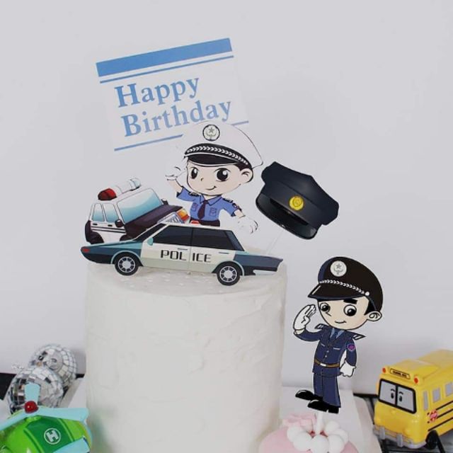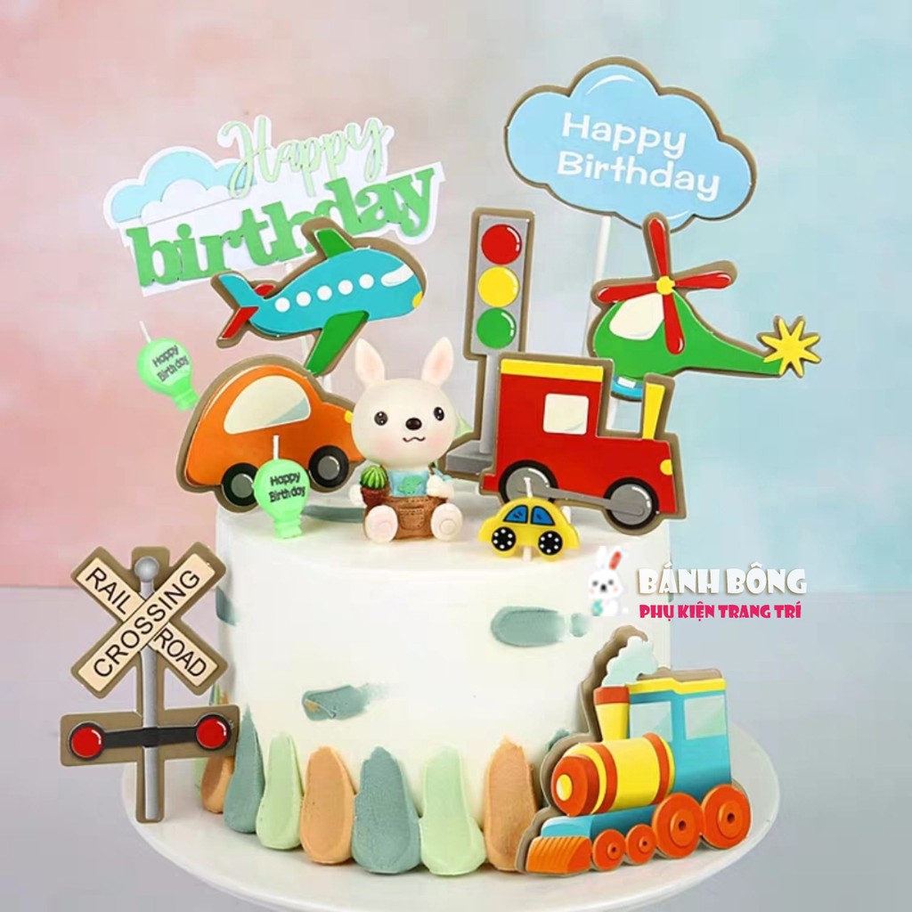 Set Cắm HPBD Phương Tiện Giao Thông Xe Cảnh Sát Cứu Thương Máy Bay trang trí Bánh Kem Phụ Kiện Sinh Nhật