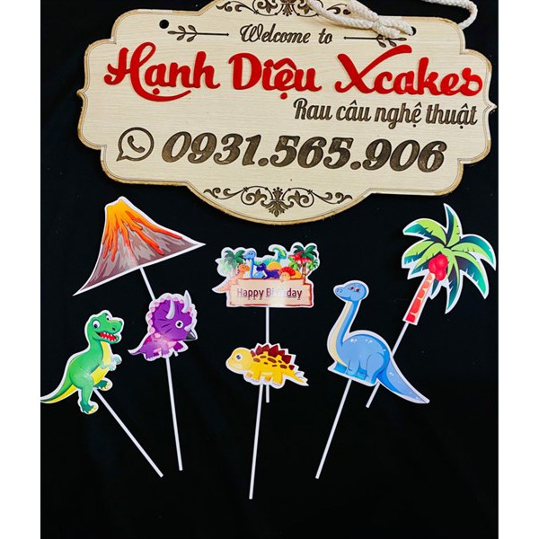 Sét Cắm Khủng Long Cây Dừa Phụ Kiện Trang Trí Bánh