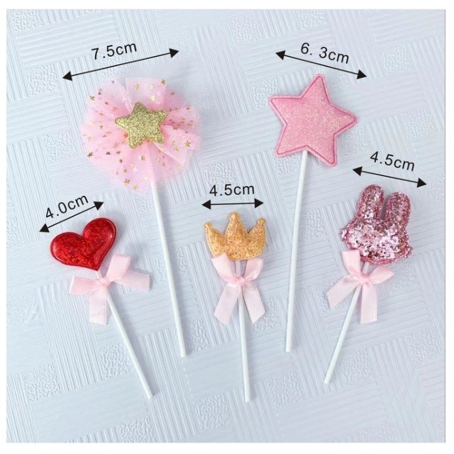Giới thiệu Set cắm tai thỏ vương miện tim sao trang trí bánh kem, set cắm tai thỏ trang trí