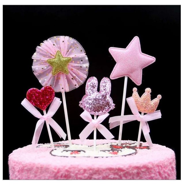 Set cắm tai thỏ vương miện tim sao trang trí bánh kem, set cắm tai thỏ trang trí- Dùng để trang trí bánh kem, bánh sinh nhật, trang trí ....