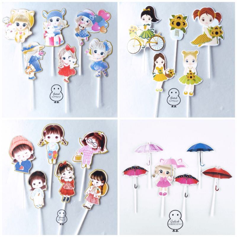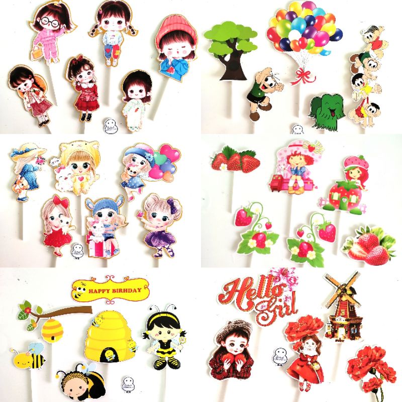 Set cắm trang trí bánh kem cho bé gái- Dùng trang trí bánh kem các loại.