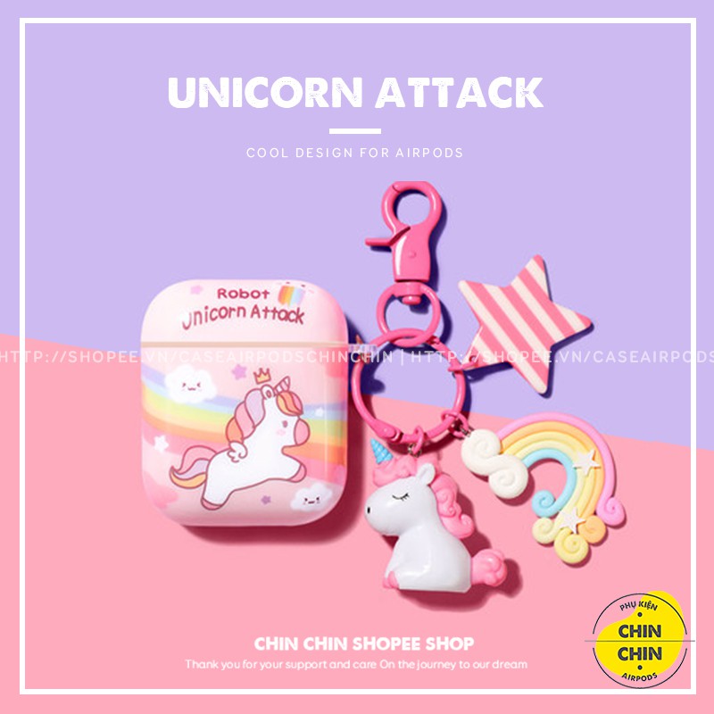 Giới thiệu Set Case Vỏ Bao Airpod1 2 Pro Unicorn Bằng Nhựa Dèo TPU Chống Bám Bụi Kèm Móc Khóa Cực Cute - Chin Chin Shop