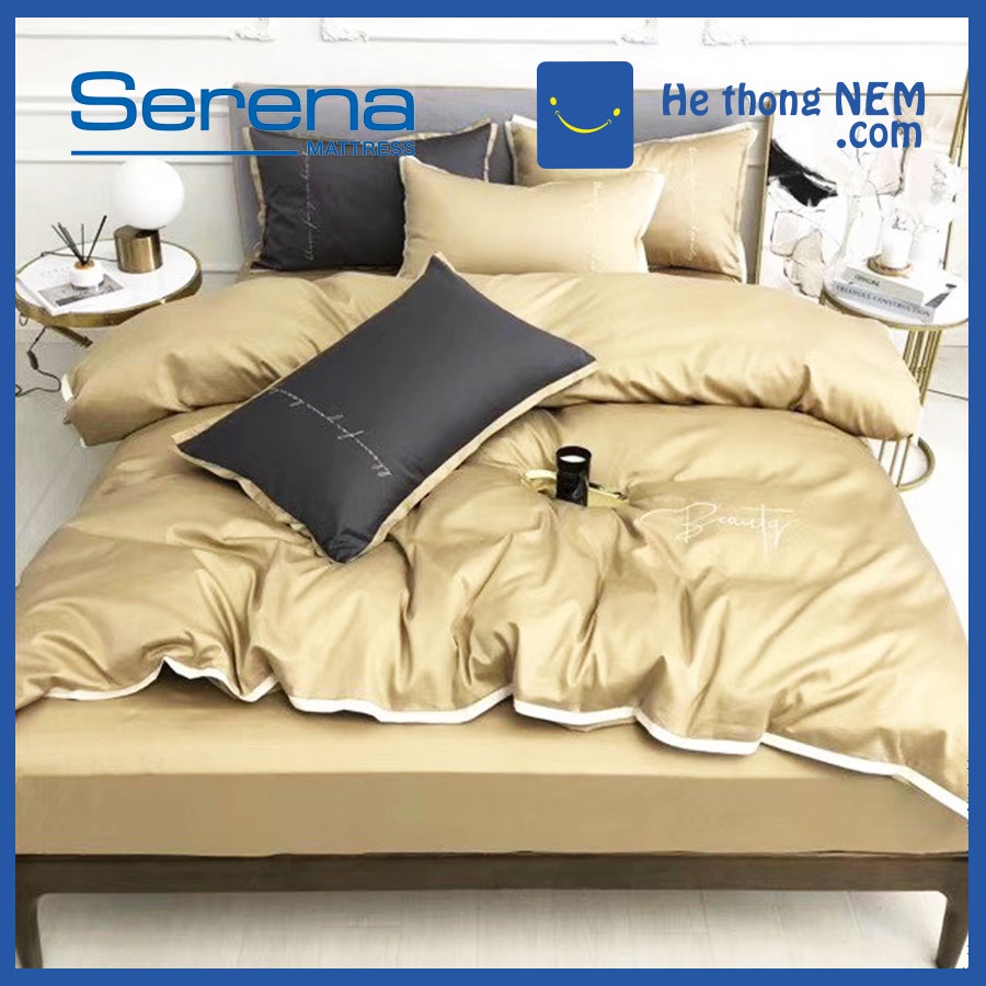 Giới thiệu Set Chăn Ga Gối Nệm 5 Món Lụa Pháp Thêu SERENA Chuẩn Khách Sạn 5 Sao Grap Giường Chăn Ga Gối Đệm Cao Cấp - Hệ Thống Nệm