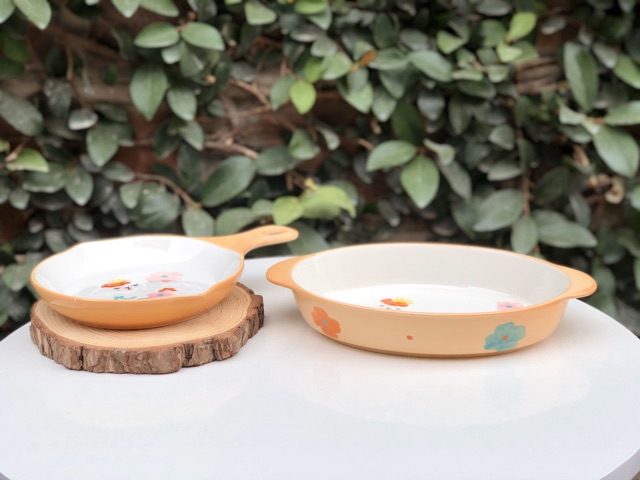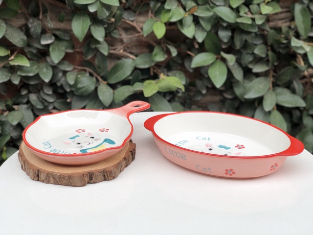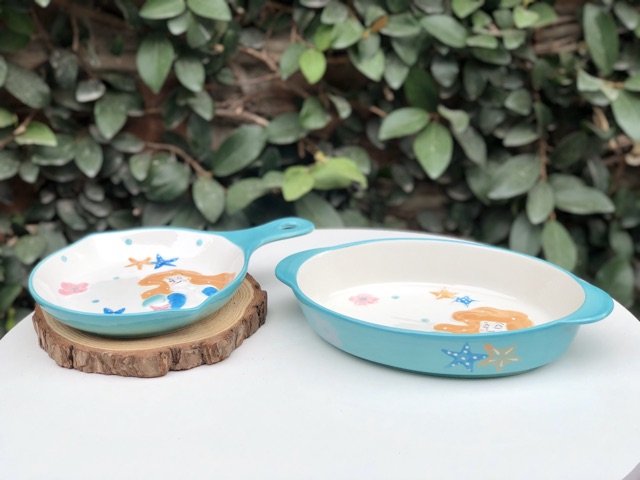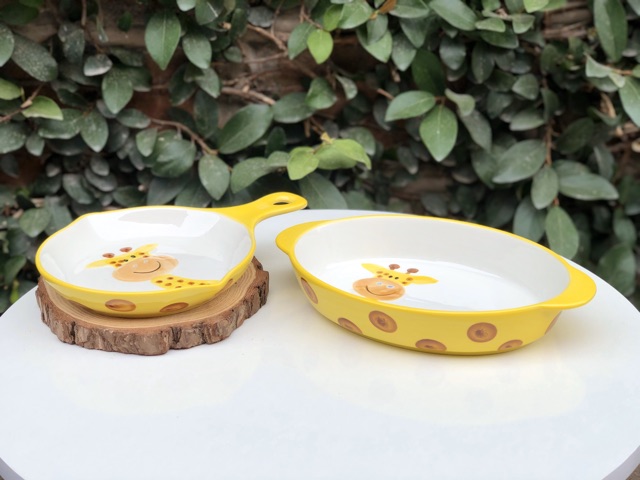 Set khay sứ dáng bầu dục có 2 tai và chảo sứ có tay cầm dáng tròn phong cách Bắc Âu sang chảnh, đẹp mắt, với hoạ tiết hoạt hình 3D nổi được vẽ thủ công bằng tay, các bạn yêu bếp, thích nấu ăn và chụp ảnh đồ ăn ko thể bỏ qua các mẫu khay nhà e đâu ạ 🍃Khay sứ dùng an toàn tuyệt đối cho lò nướng, lò vi sóng, máy tiệt trùng, máy rửa bát... yên tâm sử dụng cho cả gia đình nhé ❤️