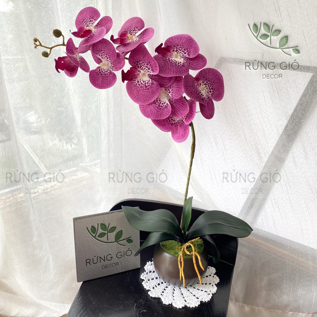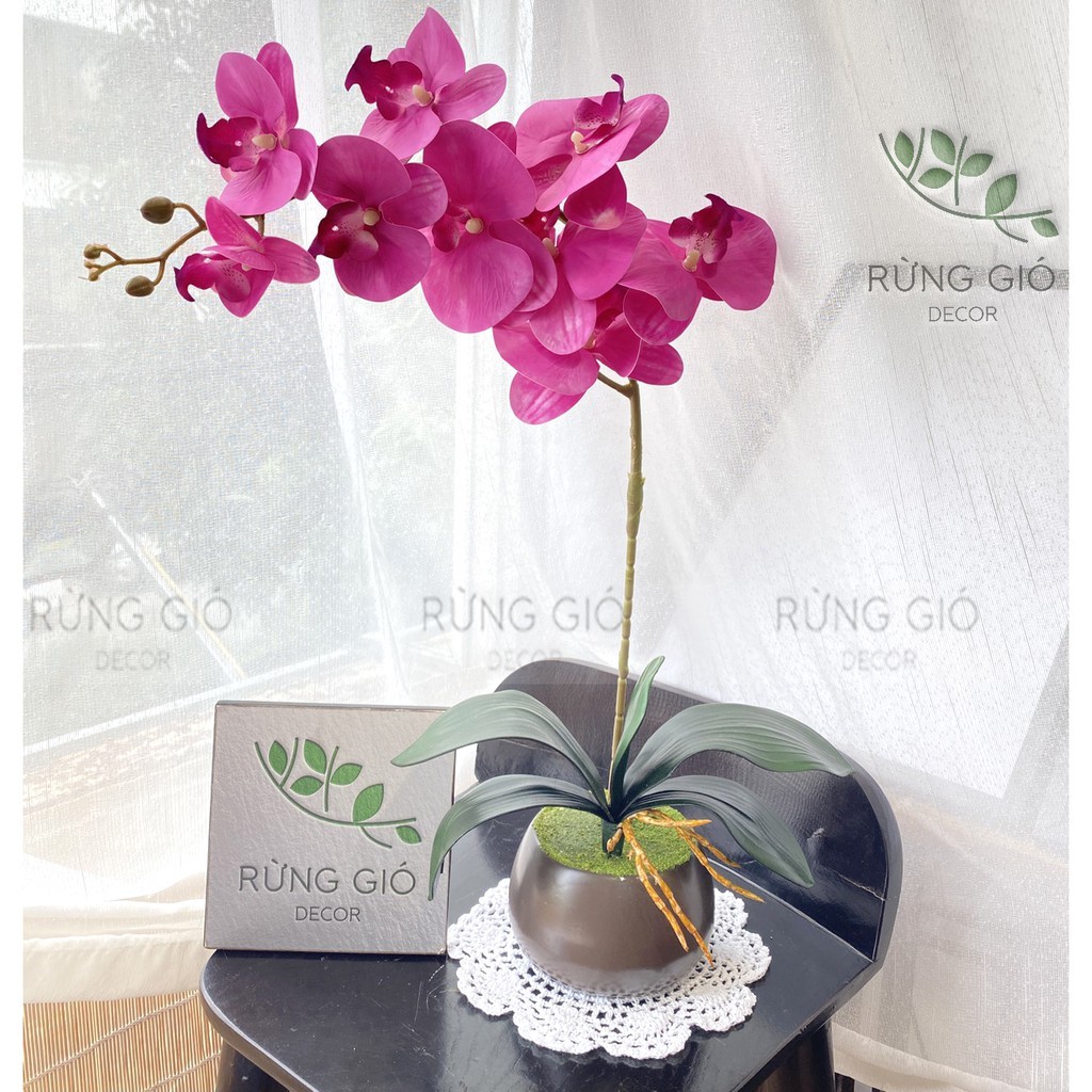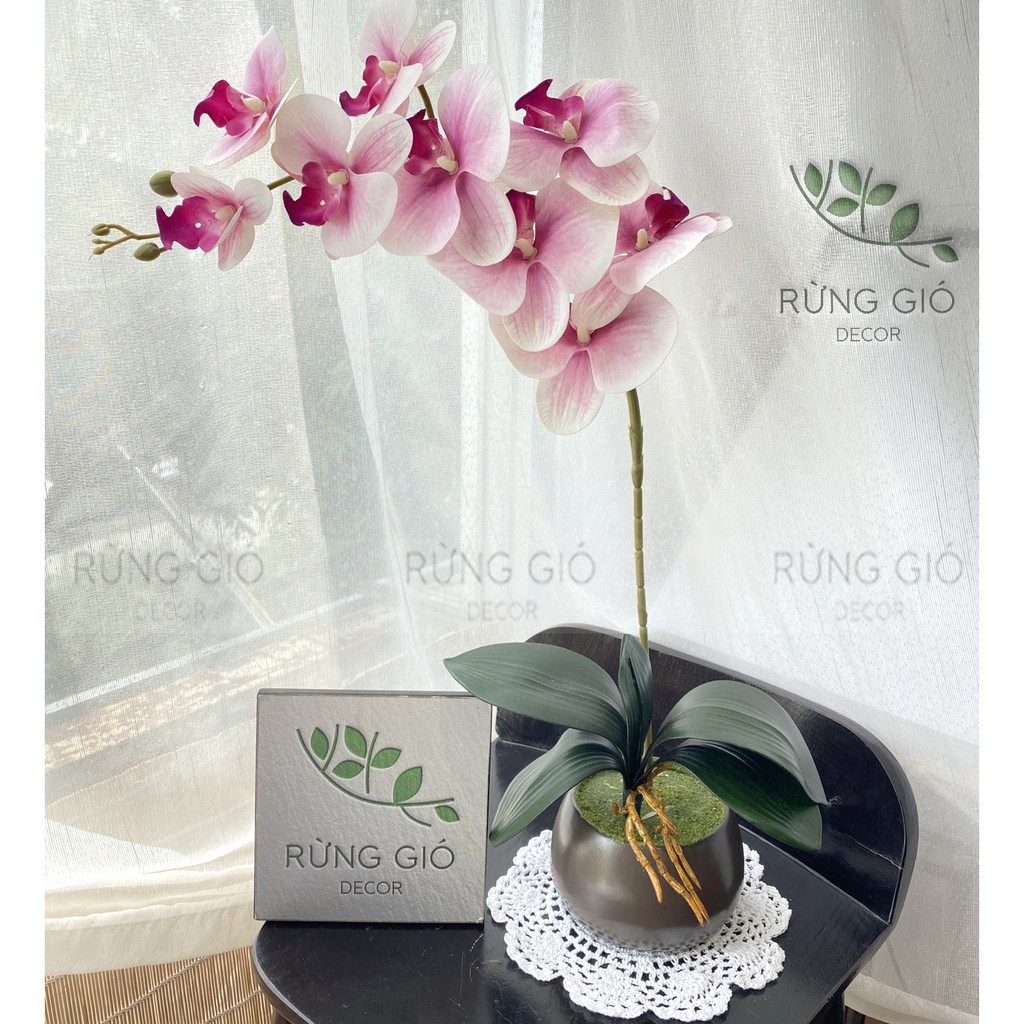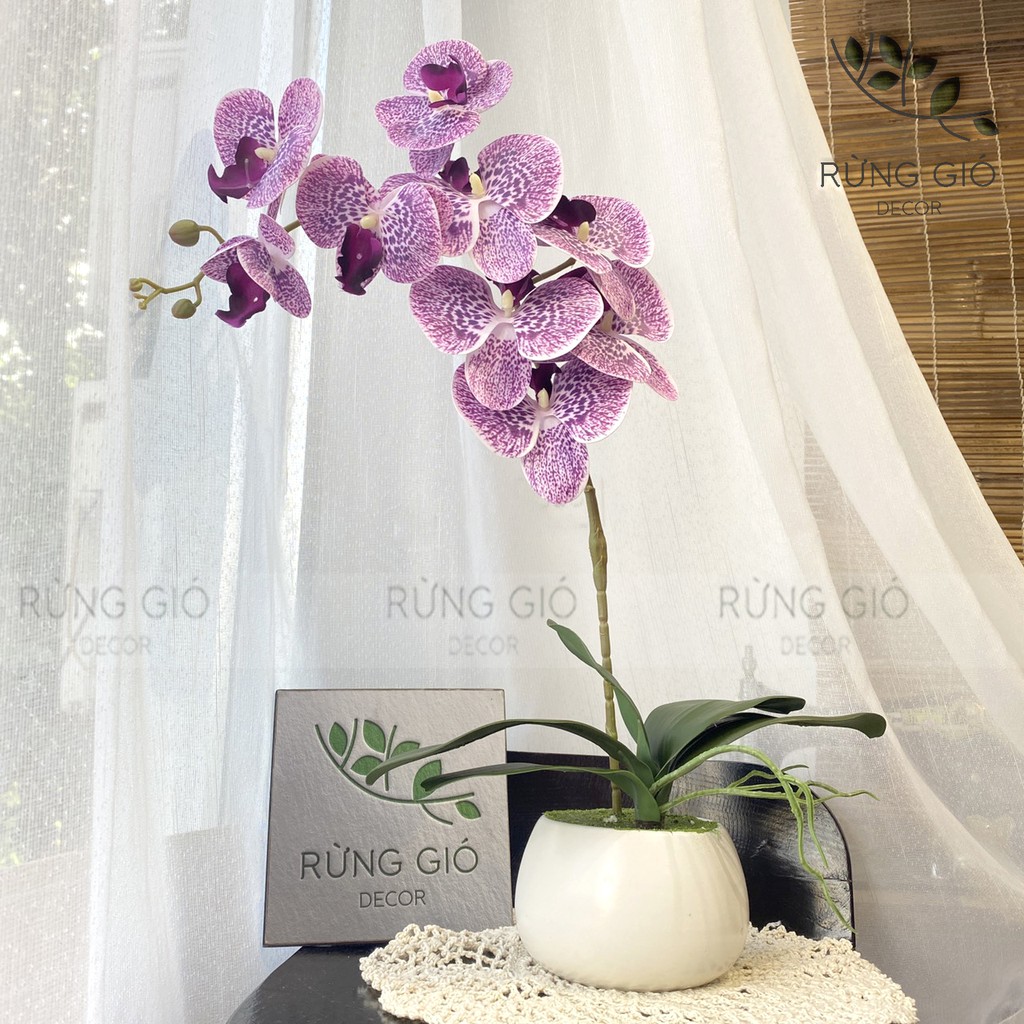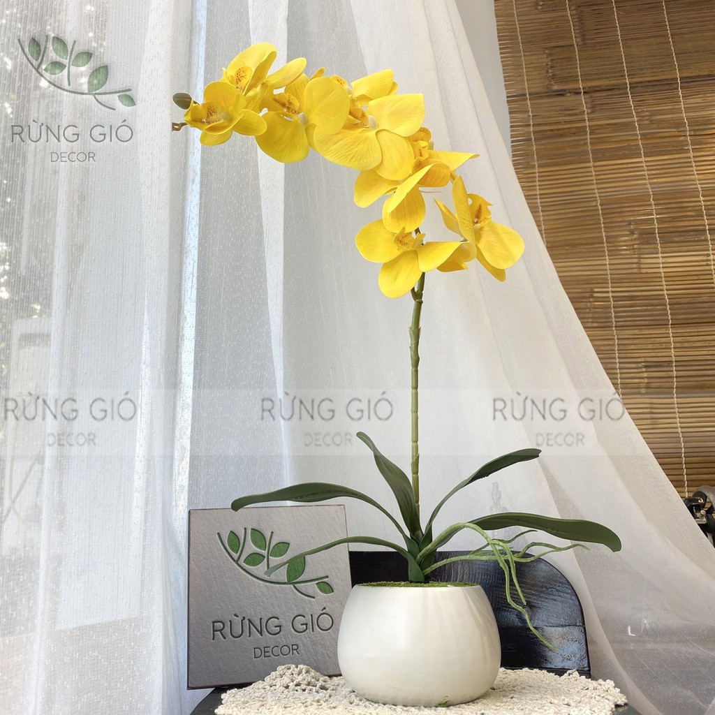 Set Chậu Lan Hồ Điệp (gồm cả chậu sứ + 1 cành hoa 9 bông to), hoa lan cao su cao cấp mã Sét 10