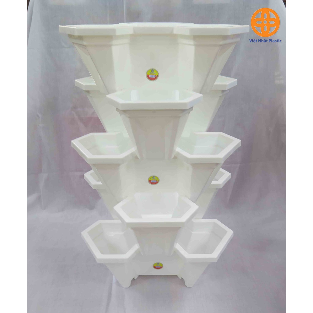 SET Chậu nhựa trồng cây, chậu xếp tầng tháp trồng cây cảnh, trồng hoa, trồng rau củ tiết kiệm không gian nhựa Việt Nhật