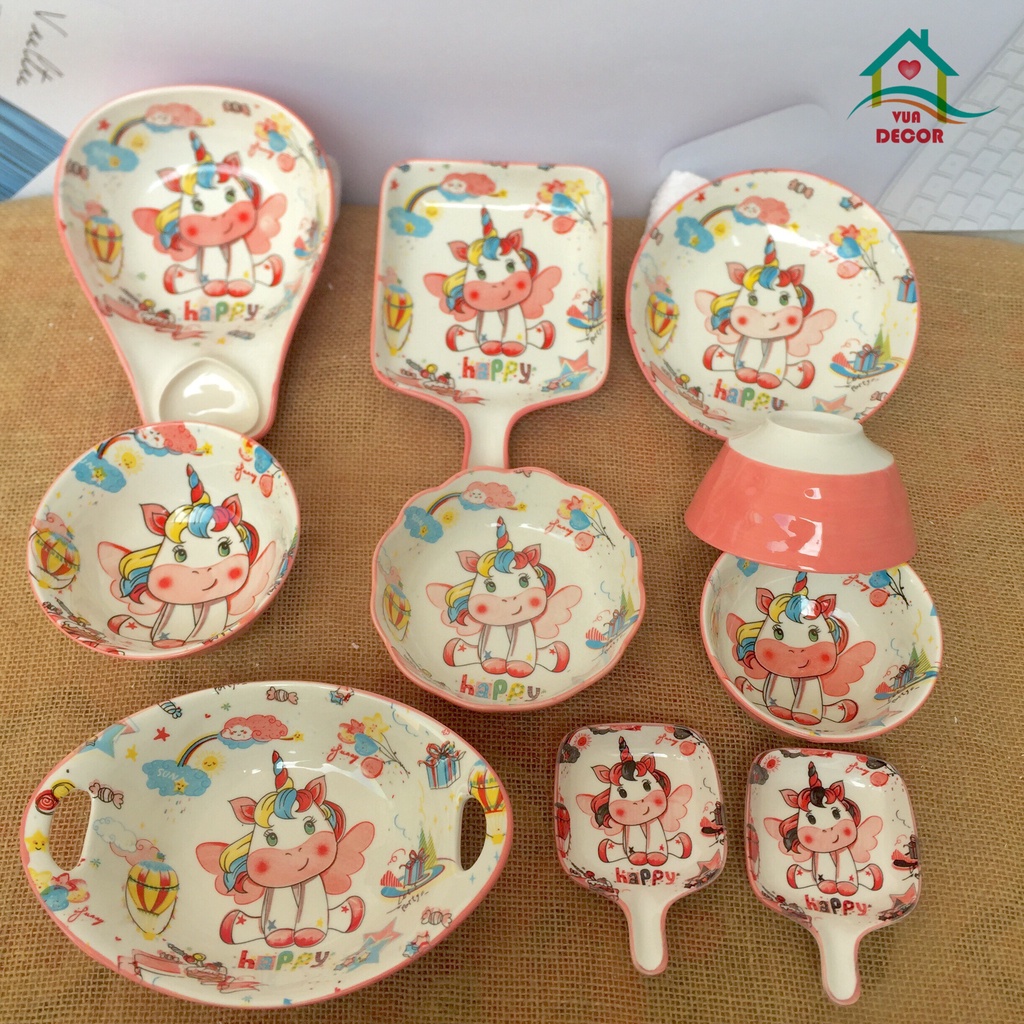 Tên sản phẩm : Set Chén Bát Decor 🌺 Ngựa Hồng Pony 🌺 siêu đáng yêu S117- Chất liệu: GỐM SỨ cao cấp