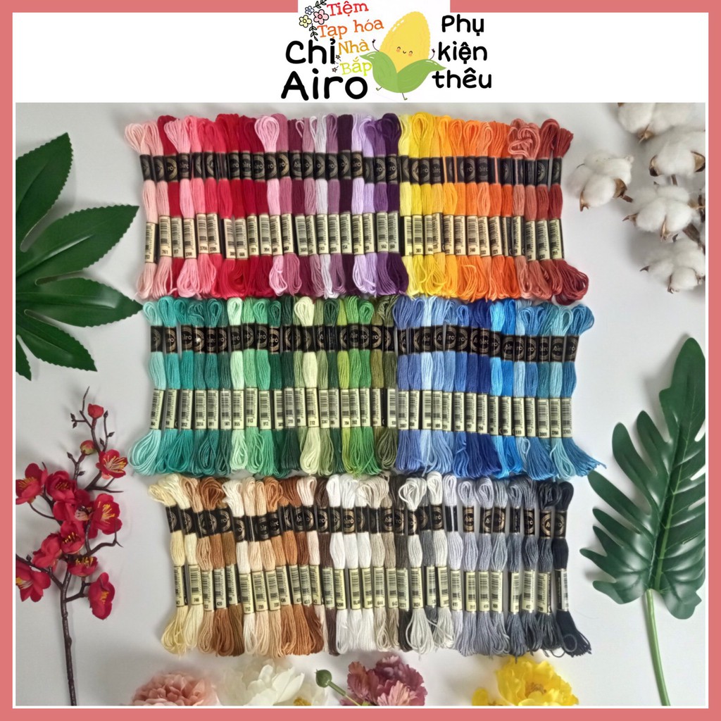 Chỉ thêu Airo của hãng Cherish, một trong những hãng chỉ thêu tốt nhất của Trung Quốc. Set chỉ gồm 100 con chỉ được chọn lọc cẩn thận những màu đẹp và dễ phối nhất, giúp bạn có đủ tông màu để hoàn thiện các tuyệt tác.Đây là chỉ cotton, tuy nhiên chỉ của hãng Airo được làm từ sợi eco- cotton nên có rất nhiều ưu điểm vượt trội so với chỉ cotton thông thường. Chỉ Airo sáng mượt, bóng hơn và ít xù, nếu so với giá tiền thì thực sự là chất lượng vượt trội so với các hãng chỉ khác. Đó là lý do tiệm chọn chỉ thêu của hãng Airo để giới thiệu với tất cả mọi người.