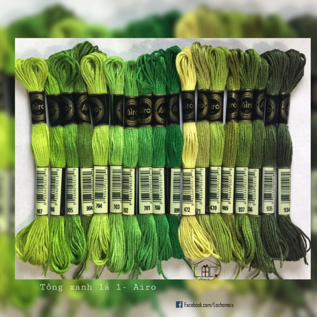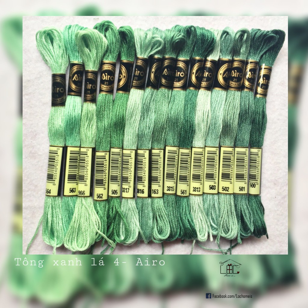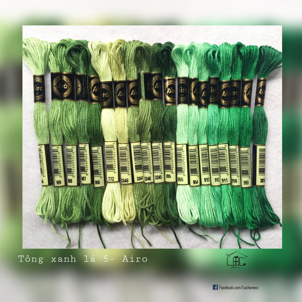 Sở thích & Sưu tầm > Dụng Cụ May Vá || Set Chỉ Thêu Airo Tone Xanh Lá - LỘC HomeisCòn hàng