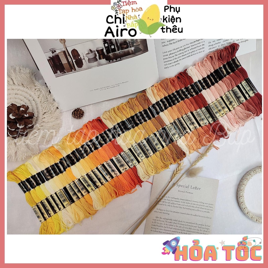 Sở thích & Sưu tầm > Dụng Cụ May Vá || Set Chỉ Thêu Airo Tông Màu Vàng CamCòn hàng