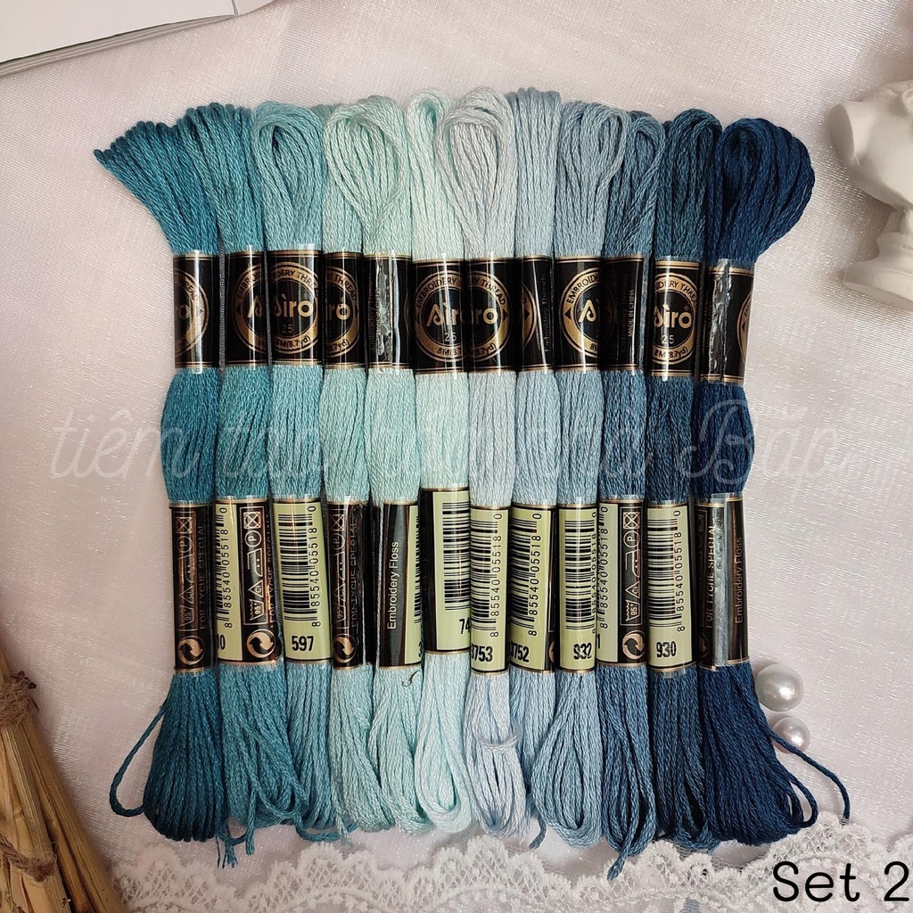 Sở thích & Sưu tầm > Dụng Cụ May Vá || Set Chỉ Thêu Airo Tông Màu Xanh DươngCòn hàng