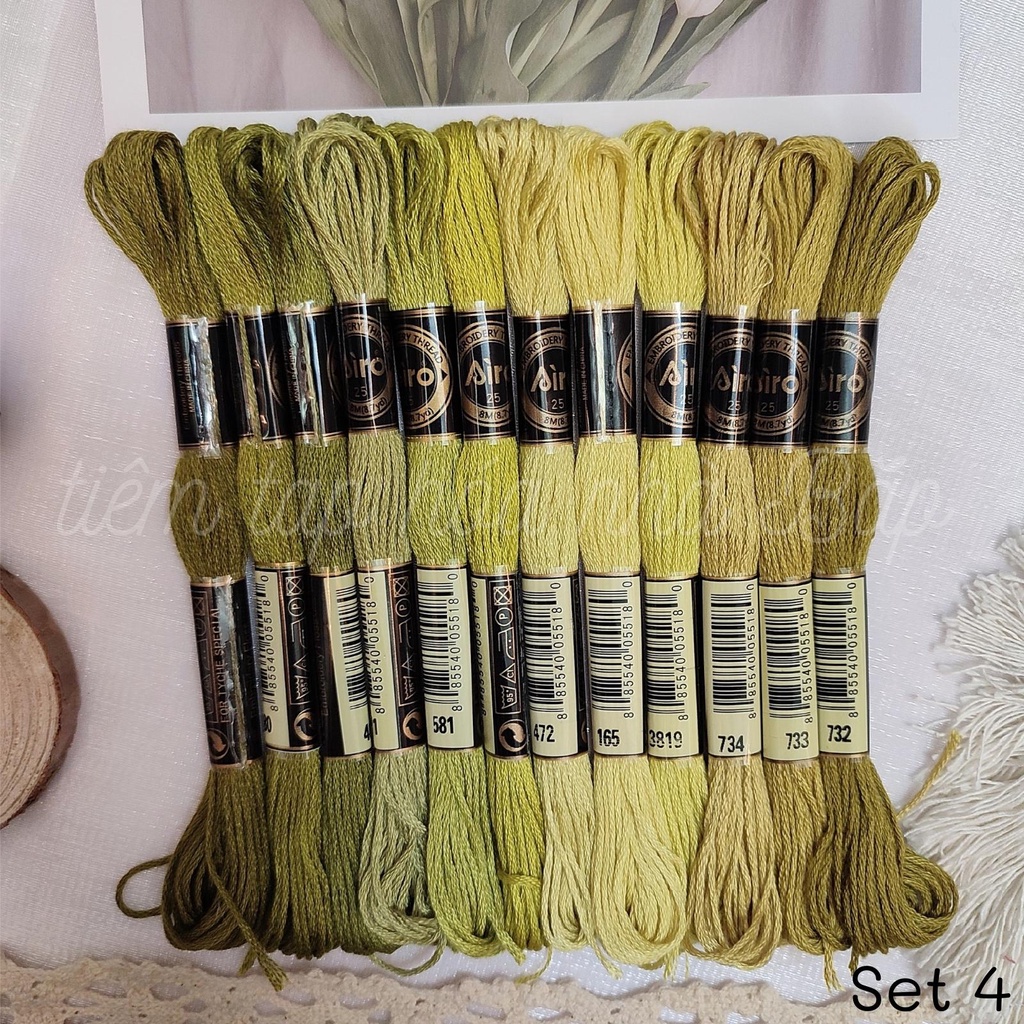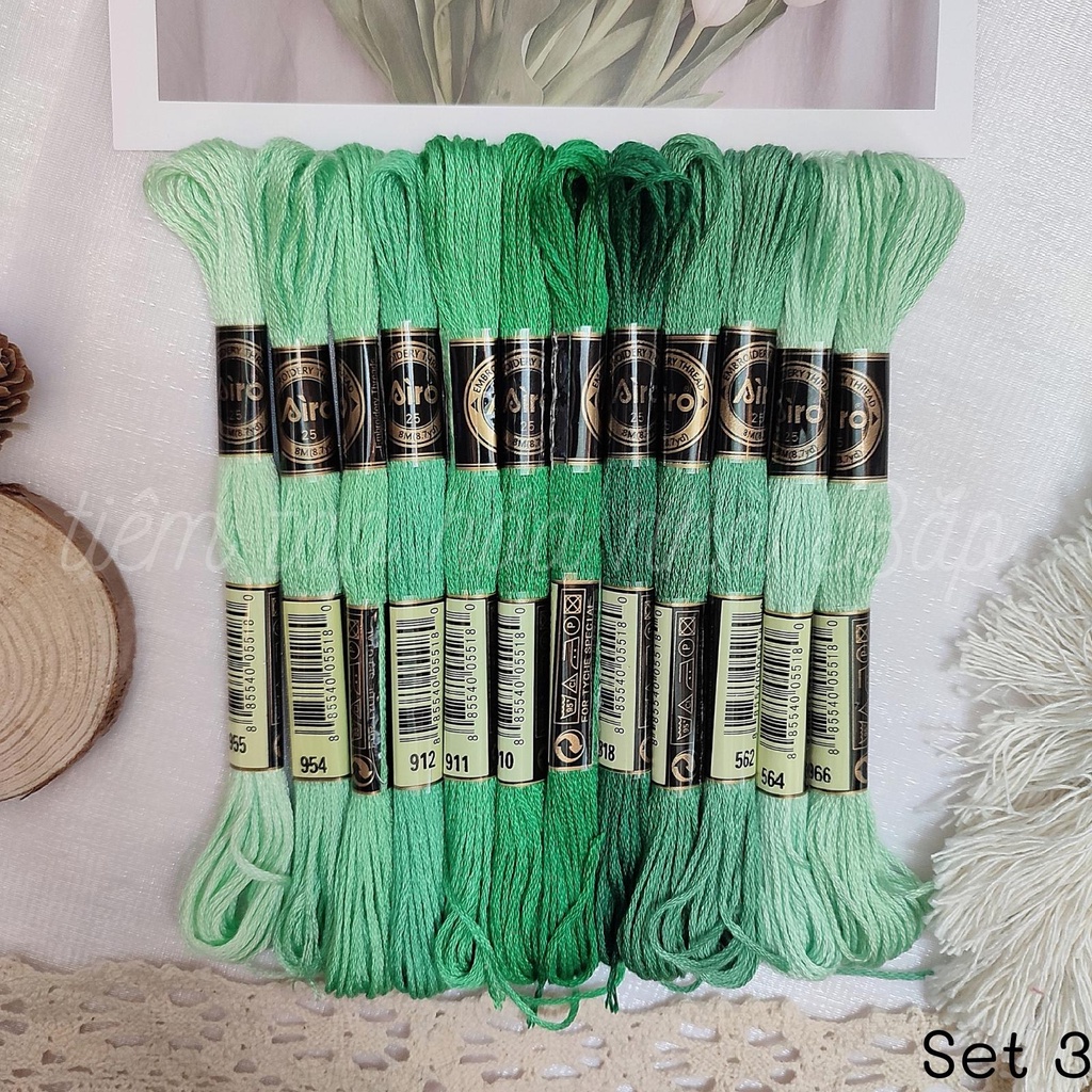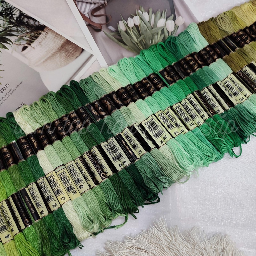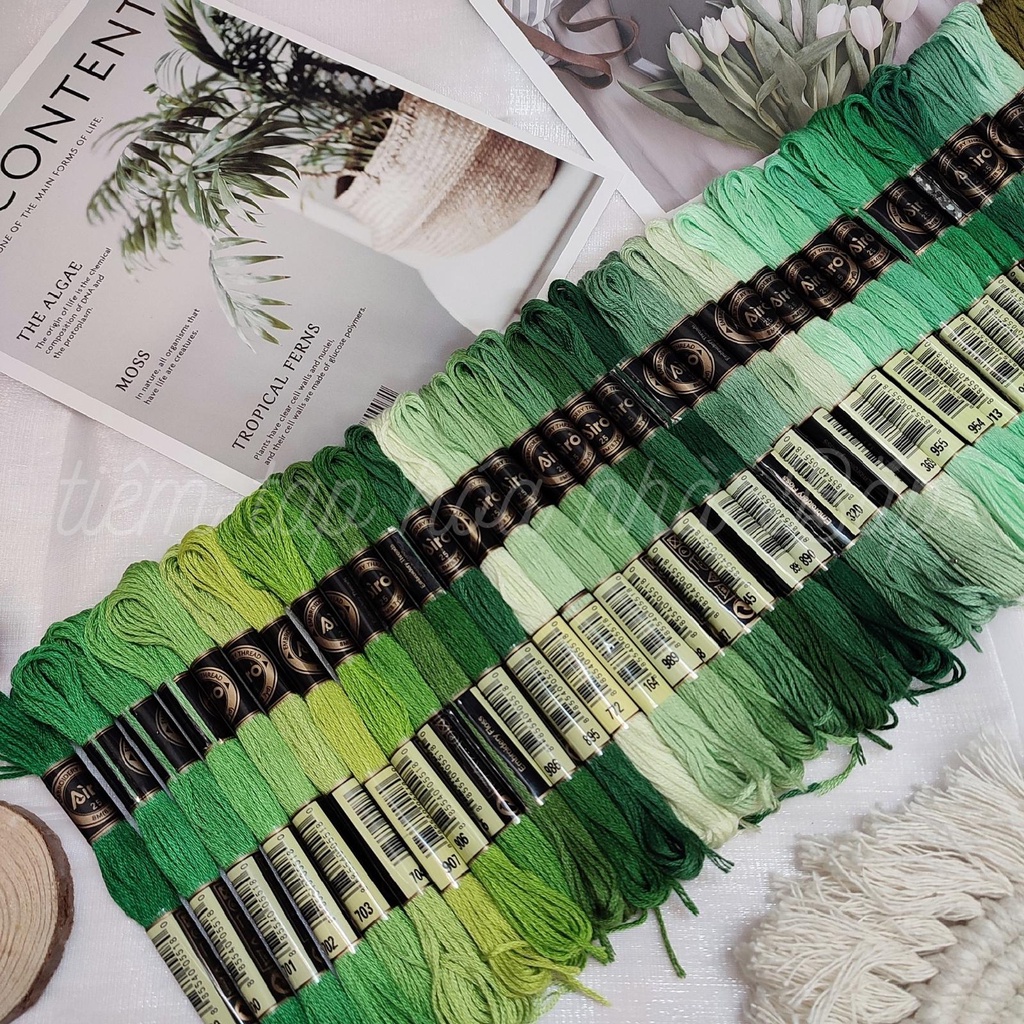 Sở thích & Sưu tầm > Dụng Cụ May Vá || Set Chỉ Thêu Airo Tông Xanh LáCòn hàng