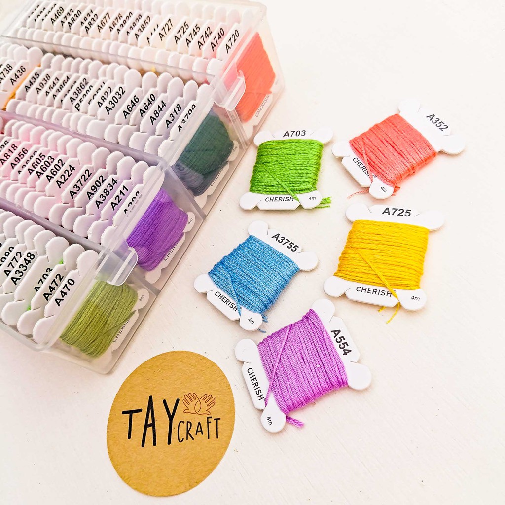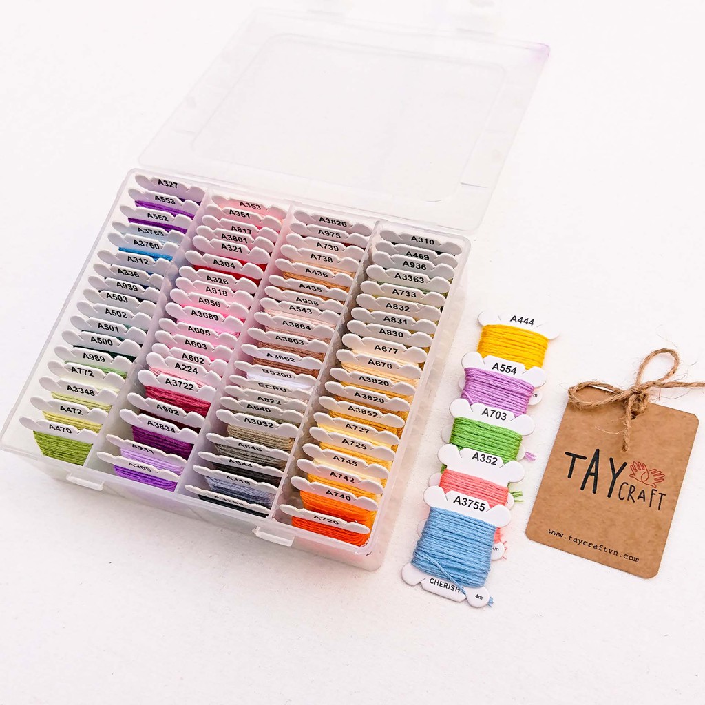 Sở thích & Sưu tầm > Dụng Cụ May Vá || Set chỉ thêu Cherish 80 màu quấn sẵn (kèm hộp đựng)Còn hàng