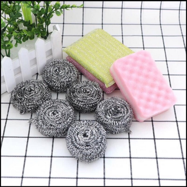 Nhà cửa & Đời sống > Dụng cụ chăm sóc nhà cửa > Miếng bọt biển, miếng chà vệ sinh || Set cọ xoong inox kèm miếng rửa bát Nhật - Miếng rửa bátCòn hàng