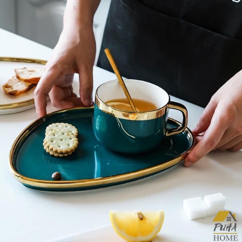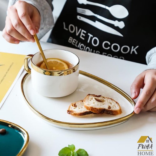 Nhà cửa & Đời sống > Bộ đồ bàn ăn > Dĩa || Set cốc cà phê và đĩa ăn sáng decor ♥️ ♥️ set cốc đĩa sứ kèm thìa mạ vàng phong cách Bắc ÂuCòn hàng