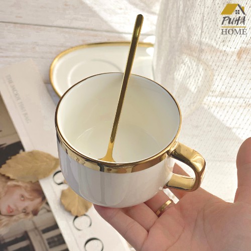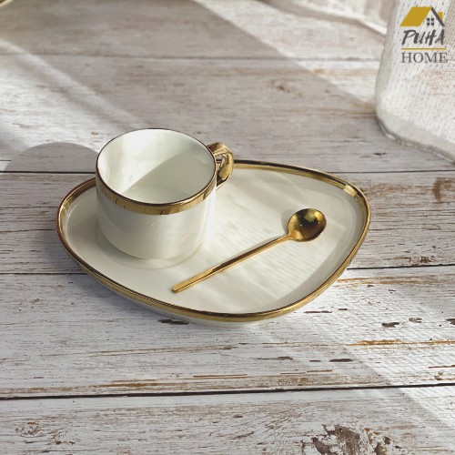 Set cốc cà phê và đĩa ăn sáng decor ♥️ ♥️ set cốc đĩa sứ kèm thìa mạ vàng phong cách Bắc Âu