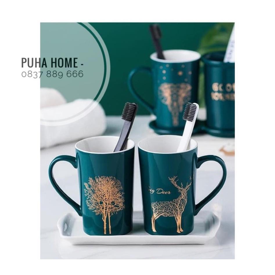 Set cốc đánh răng sứ có khay đựng[FREE SHIP] ☘𝘾𝘼𝙊 𝘾𝘼̂́𝙋☘