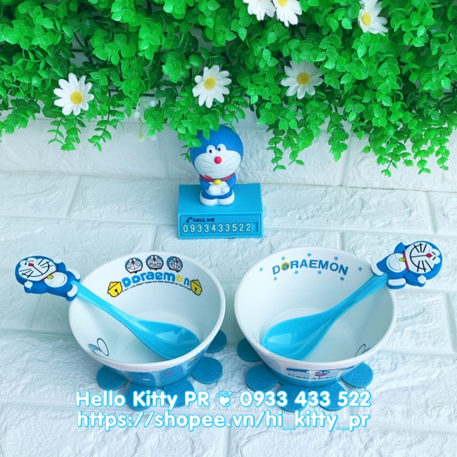 SET COMBO CHÉN SỨ CAO CẤP DORAEMON DOREMON➤➤ Set gồm: 2 chén to + muỗng 3D + lót chén