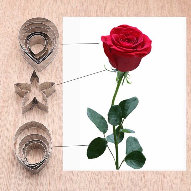 Set cutter hoa lá hoa hồng làm hoa đường, đậu cán.