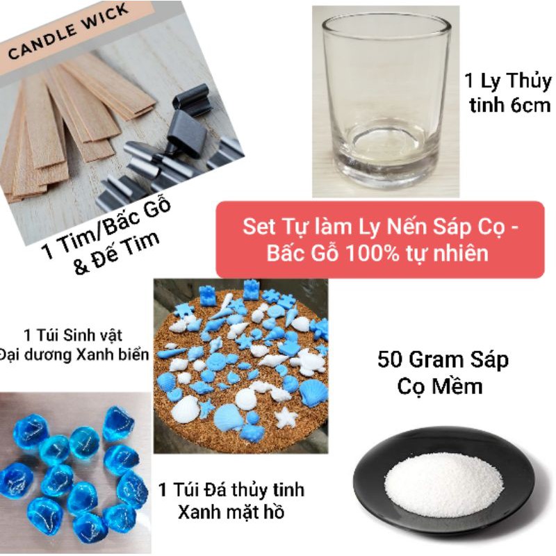 Giới thiệu [Set ĐẠI DƯƠNG] tự làm Ly Nến sáp Cọ mềm TIM/BẤC GỖ tự nhiên,vintage(chọn Mùi hương làm Nến thơm) 9293store 9293kitdecor
